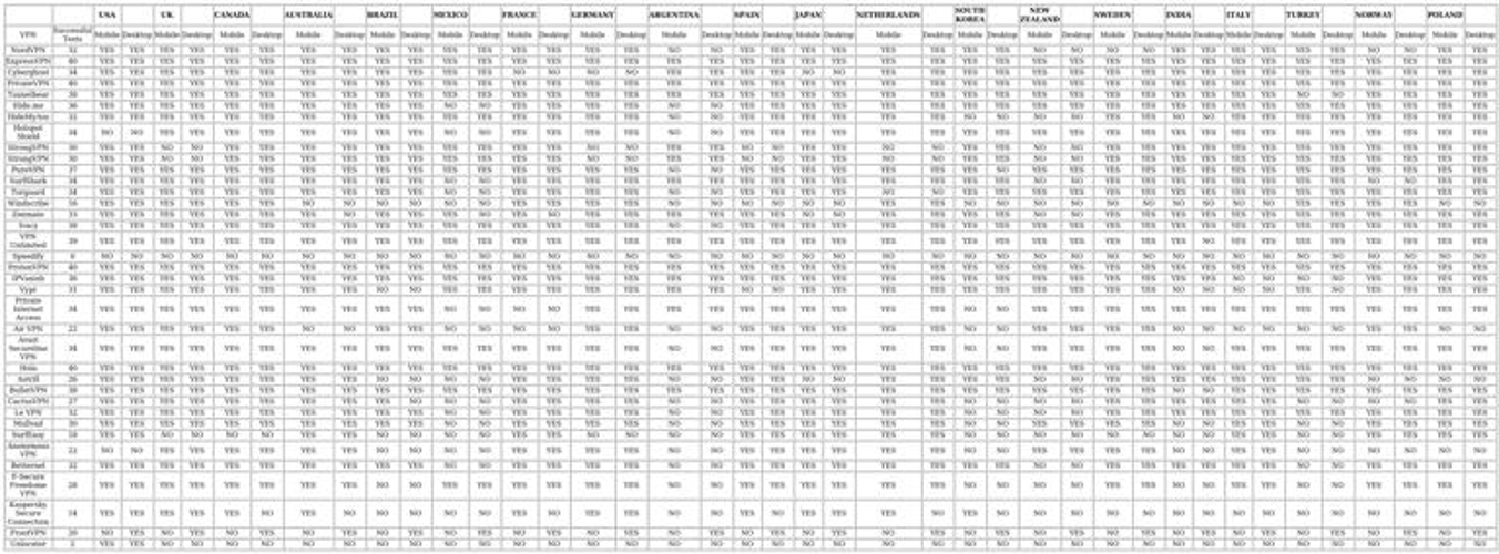 To ensure precise regional access, they examined the top 10 titles in each region's Netflix library, confirming that the correct local content was available. Attempting to stream shows provided additional verification—if a show played smoothly, the VPN was deemed successful; if a proxy error appeared, it was marked as blocked. Results from these tests were meticulously recorded.